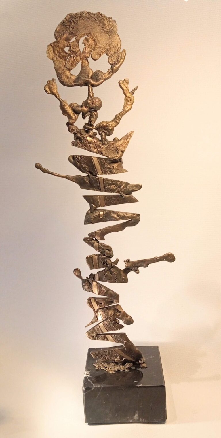 Een aantal beelden zijn gemaakt van losse stukjes brons. Ze hebben vaak een onverwachte vorm die ik goed kan toepassen. Ik las alle stukjes aan elkaar en patineer en polijst (gedeeltelijk) het eindresultaat. Soms voeg ik glaselementen toe die ik smelt en samenvoeg in een glasoventje, en ik verguld soms delen van het beeld. Sinds 2024 ben ik zelf brons gaan smelten en giet ik vrije vormen in zand. Voorbeelden hiervan zijn de beelden vanaf Duikvlucht. Soms verzaag ik het gegoten brons en las het in een bepaalde vorm aan elkaar (bijv. Levensboom en Wolken) Soms gebruik ik de gegoten vorm zonder al teveel aanpassingen. (bijv. Wajang Kulit en Branding)