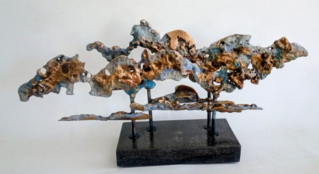 De beelden zijn gemaakt van losse stukjes brons. De losse stukjes hebben vaak een onverwachte vorm die ik goed kan toepassen. Ik las alle stukjes aan elkaar en patineer en polijst (gedeeltelijk) het eindresultaat. Soms voeg ik glaselementen toe die ik smelt en samenvoeg in een glasoventje, en ik verguld soms delen van het beeld.